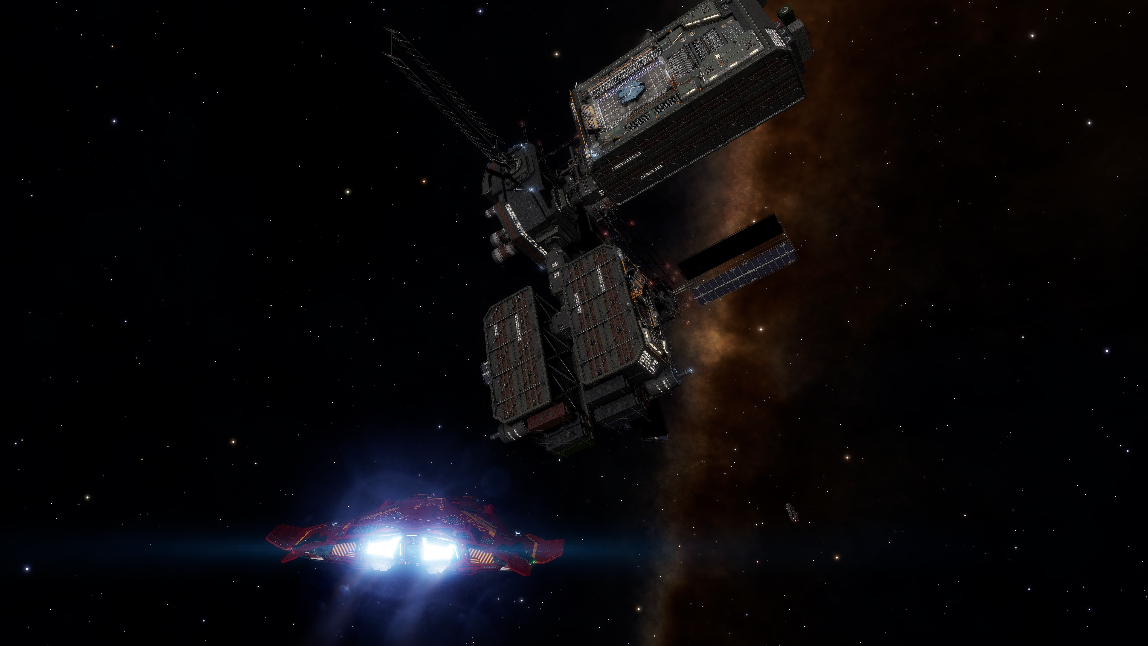 Then launch, select next station in the navigation panel as the pad is rotated back to face the slot, up thrusters, retract landing gear, boost out the slot, supercruise to the next station. Which is Asire Dock, which is another outpost. Bugger.