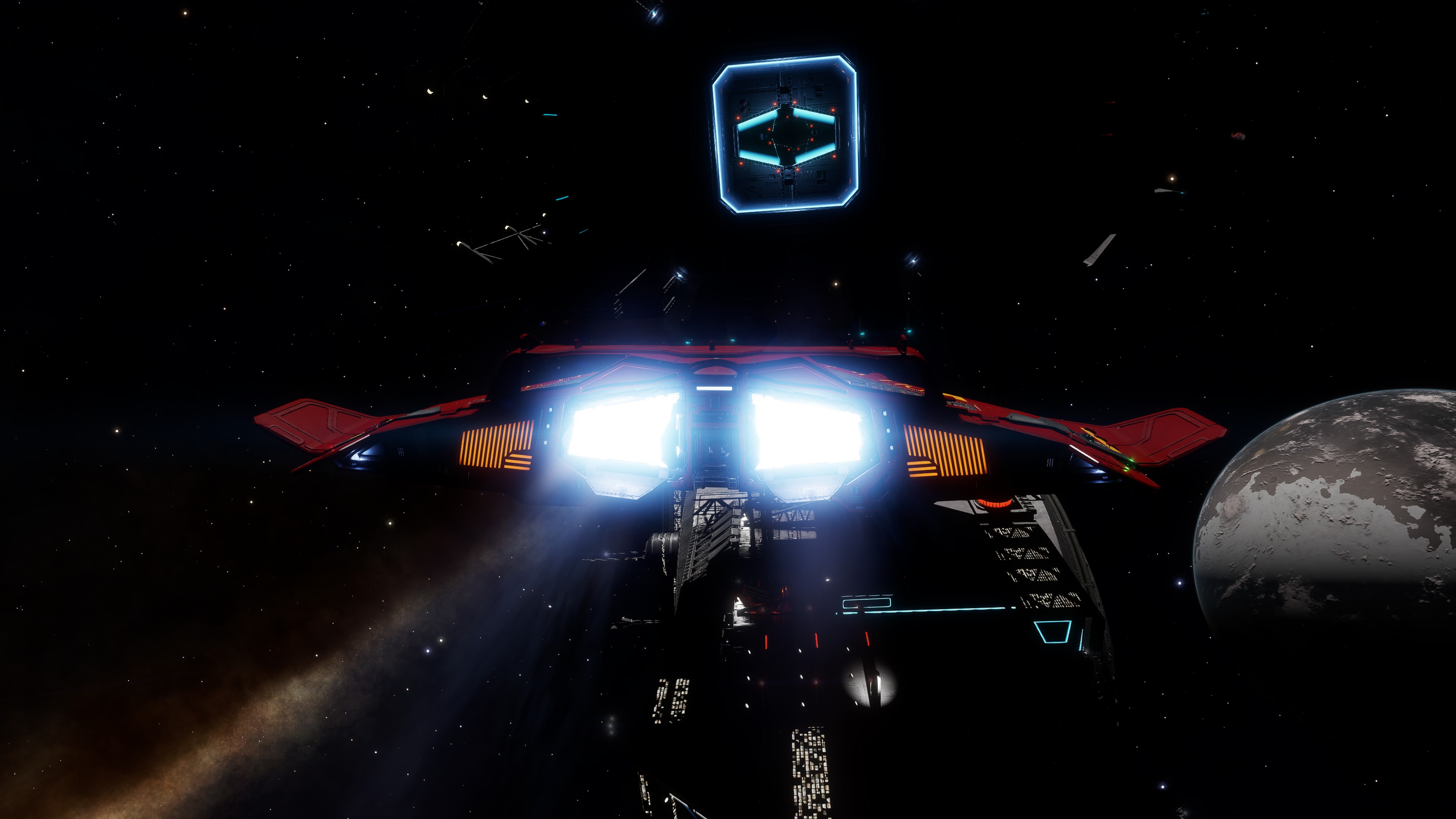 This one seemed to go too well. I was keeping 100% hull the entire way through and making decent time (at least, decent for me). Then it was time to approach the Interchange Hub and the, now no longer dreaded tunnel. I got lined up, decided to be a little more careful and adjusted my speed to about 230ms rather than boosting. I thought I’d lined up fine, but halfway through I heard a massive “DONK!” from my right wing. I was almost torn out of my seat as the Wormwood’s Bane spun around in the enclosed space. My head swam. I couldn’t tell where in space I was. The inside of the tunnel was moving violently to the left in front of the canopy and the way I had just come whizzed passed. Somehow the little cobra managed to perform a perfect pirouette as the forward thrusters gained hold and threw me out from the other side of the tunnel. I hit the boost button, desperate to get away, to leave mass locked space behind. The hull creaked and groaned terrifyingly in complaint. The mass lock indicator blinked off, I hit the jump button, the frame shift drive charged up, and I was in witch space.
