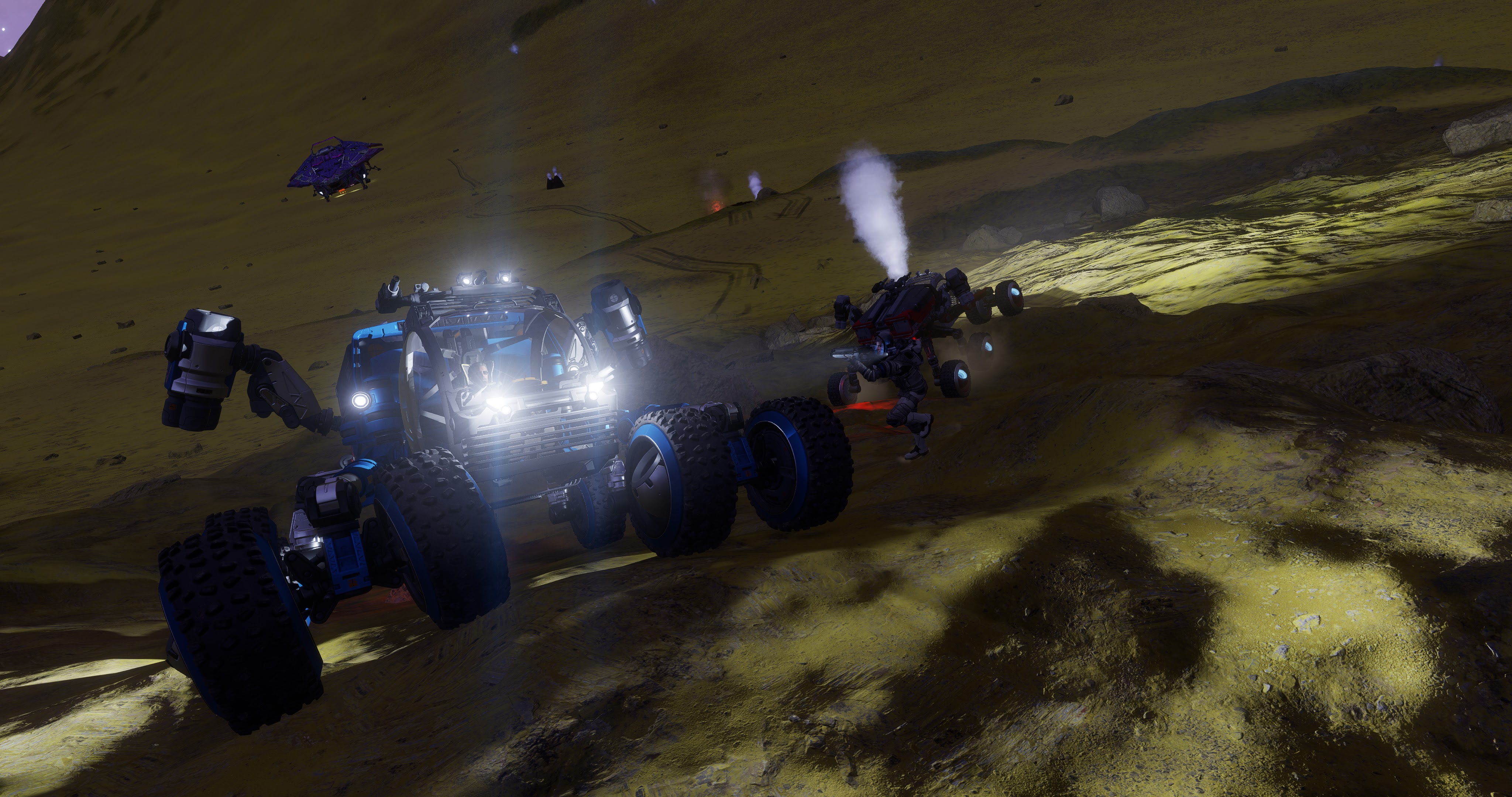 I threw the throttle forward and spun my SRV around to join the race. Just ahead was Picard in his. I heard him laughing over the comms. I don’t think he had seen anyone but his own crew for months. It wasn’t too long before I caught up and managed to use my Scarab’s boosters to get ahead.
