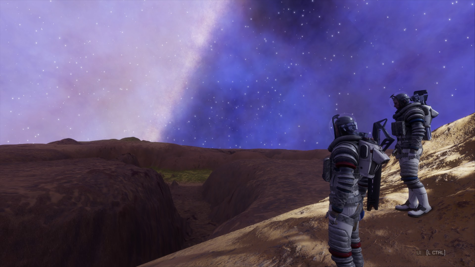 I had almost reached the summit when I heard the sound of SRV boosters getting louder from behind and, sure enough, over my head soared Picard, beating me to the top of the hill by a whisker.