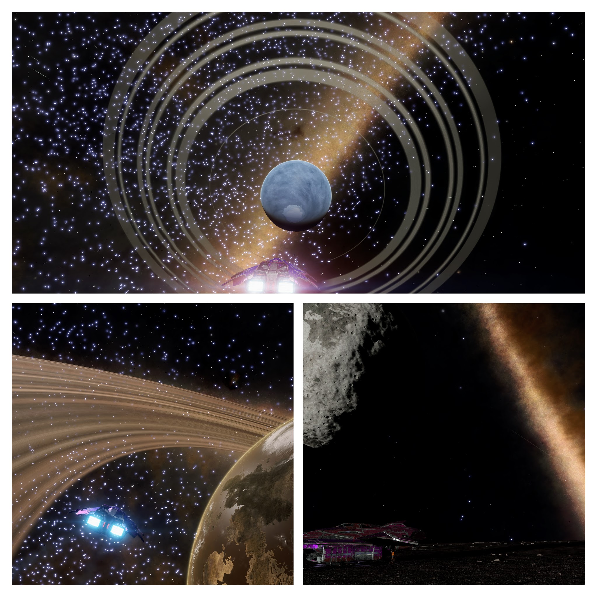 One of the most beautiful places I have ever seen. An “obsidian” world. With a stunning ring system and a sparse neon atmosphere that had been all but stripped away by solar winds from the distant star. It was one of the most magical places I had ever visited, and I am the first to discover it. If you wish to visit this absolute gem of a planet, you need to visit system Eidaills IR-I c11-18 and its planet B 3 A. Go. Enjoy! Try and get more spectacular shots than I have. It might be 64,000ls from the main star, but it’s worth it!