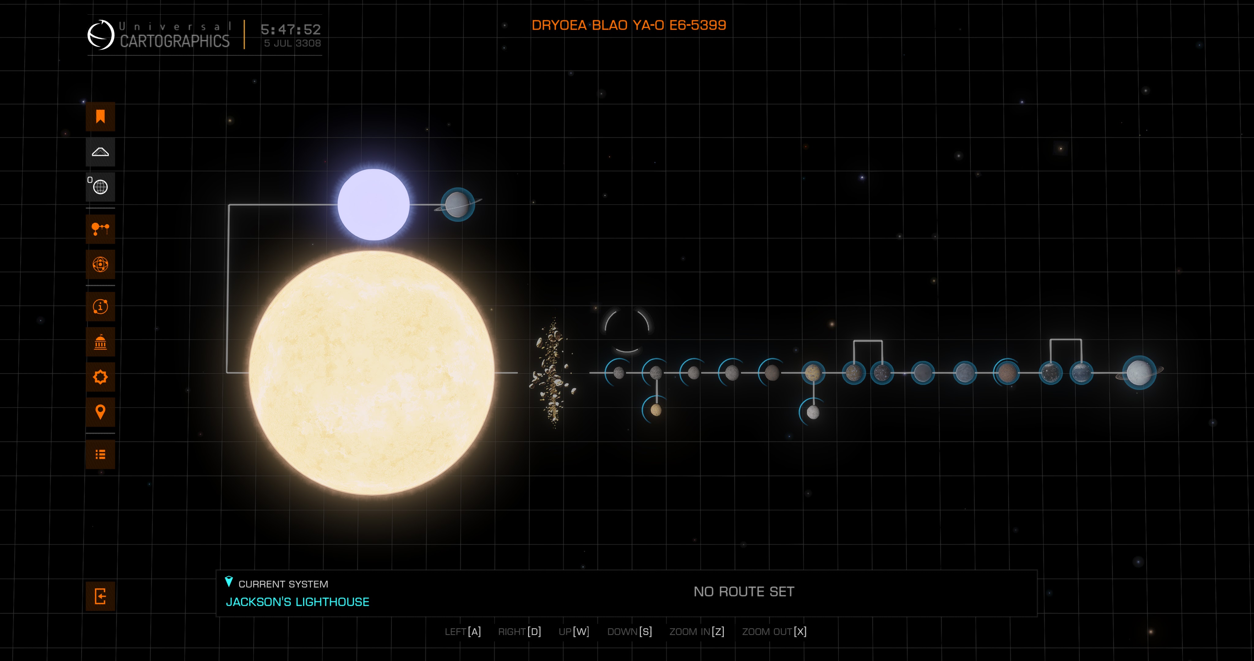 Surely enough, two weeks before the special day I received a message from the Hermes‘ communications officer. The system was to be DRYOEA BLAO YA-O e6-5399, near the border between Ryker’s Hope and the Epyrean Straits, and a little over 30,000 light years away! I would need to plan my trip.