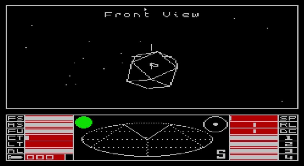 I’m back in my room. The trauma of the Bethlehem Pentecostal Church Christmas Morning Worship is over. Dinner is done, none of the usual seasonal trimmings for me. My mother liked to boil her veg until it was all a uniform grey and the turkey was almost always undercooked. So I was happy with fish fingers and mash, The rest of the day is my own. I switch on the TV, plug in the Spectrum (no on or off switch, just plug in and go) put the Elite cassette in the player, enter the command LOAD “”, press play on the tape recorder,