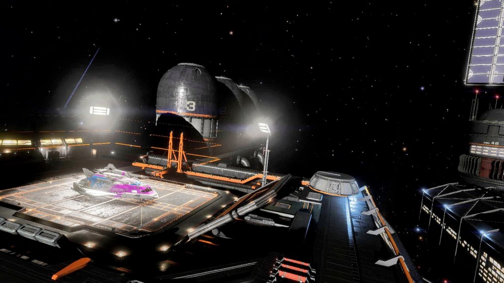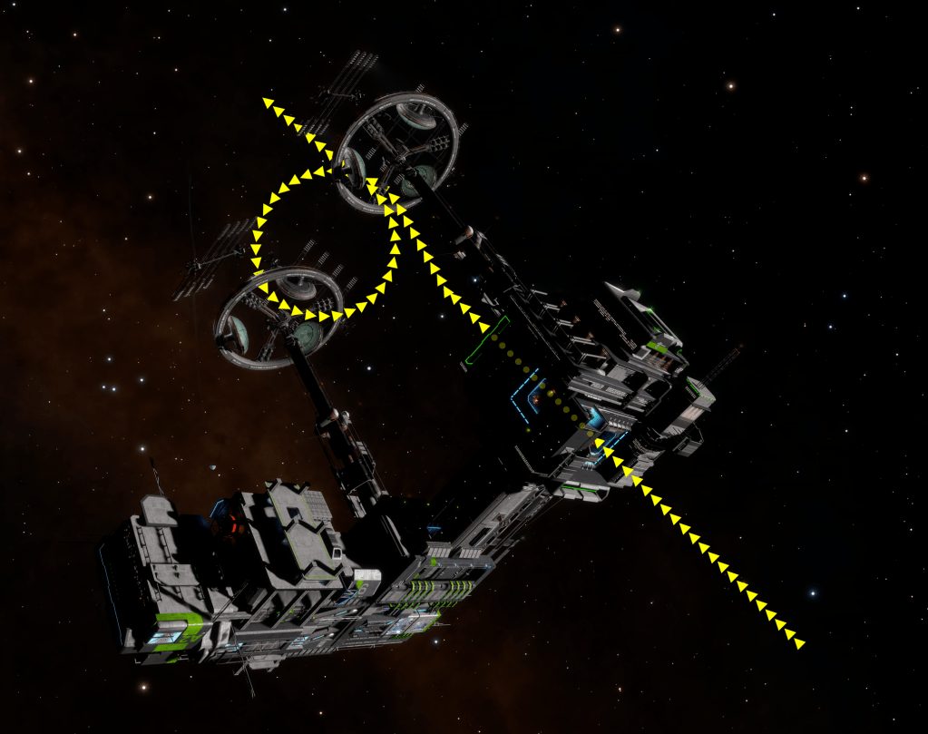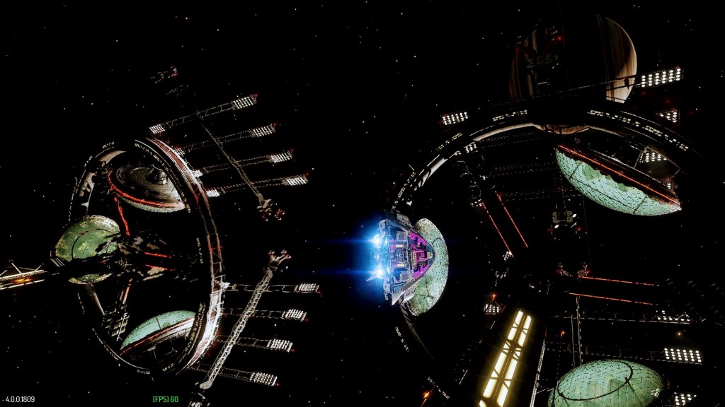 I gazed at Goeschke Horizons spinning gracefully before the Baldy. Why can I not get any of this right? Ok! Call at Ray Dock in the Graill Redd system (check), get out on foot, point at the “R” at the nearest “RAY DOCK” sign (check), get back in, launch. Call at Uhm Pharmacology on a body in the Ross 34 system, point at the “U” (check), Fly to Bailey Dock in LTT 12787, point at the “B” (check), fly to Yang’s Workshop in 35 Leonis, point at the “Y” (check). Fly to the giant hand whisk known as Hidden Field Hacienda, fly through both spinning circles and then as fast as possible through the tunnel, (che…oh, no, wait).