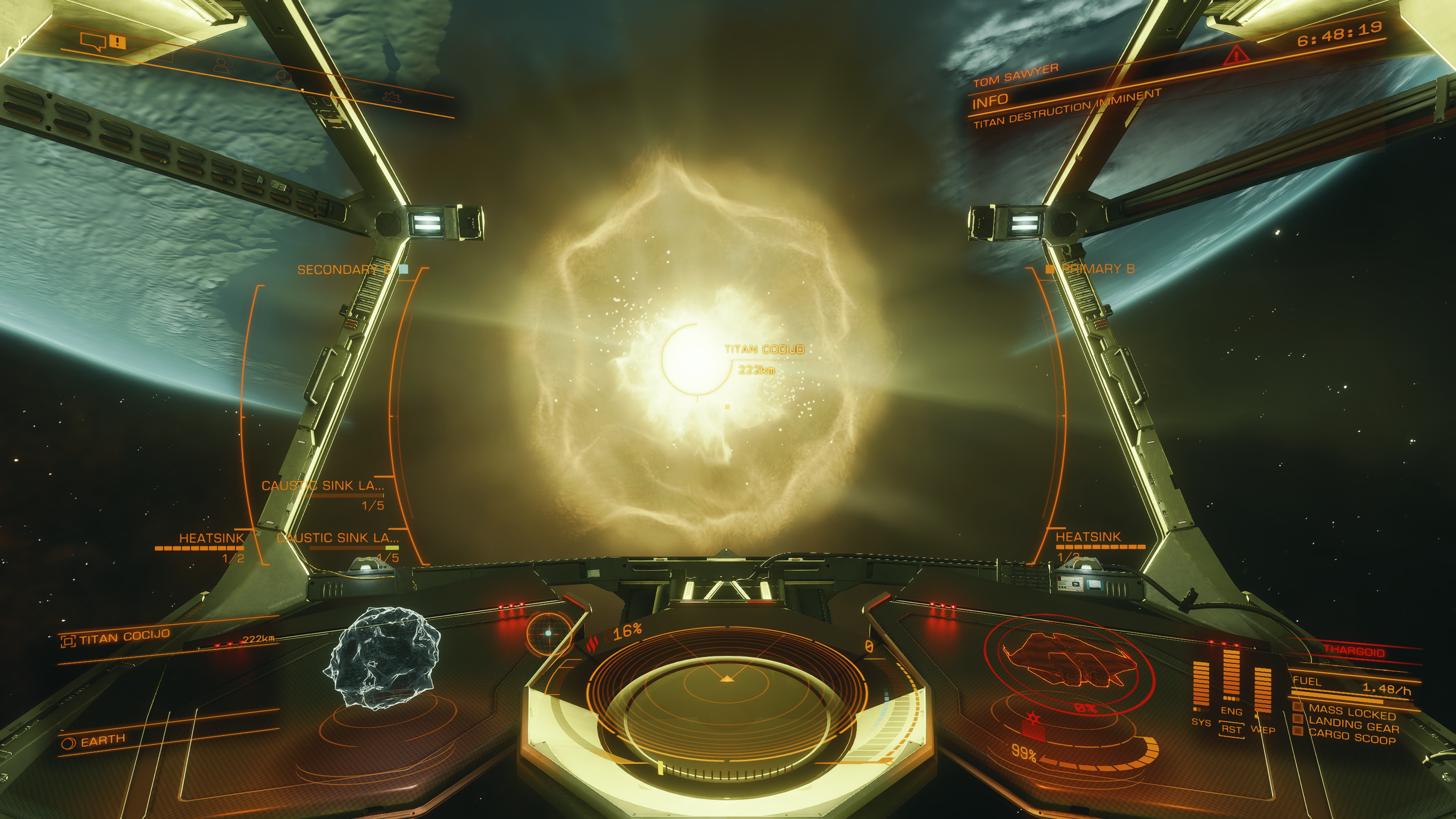 When I awoke early on Tuesday morning I was sure Cocijo’s last heart would have been taken overnight. Yet when I checked it’s status there was still a small percentage to go. I readied the Tom Sawyer, jumped to Sol and rushed to the maelstrom as quickly as I could. There I got stuck in and was determined to still be sending ax missiles into that core until it blew for good. It took a bit longer than I thought, at times it felt like I was the only one sending the nano torpedoes into the vents while everyone else waited underneath, but, with just fourteen percent hull remaining, the last heart, of the last Titan, blew in front of my cockpit. I had never been present at the destruction of the final heart before, and became a little emotional at the prospect I might never witness it ever again.