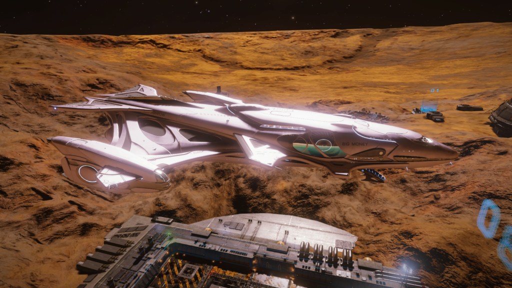 The Gutamaya ships are the most stylish, decadent and utterly beautiful ships in the galaxy and the Imperial Clipper is no exception. Now the Clipper, like most of the Gutamaya ships doesn’t really excel at any one thing, mainly as its a medium ship that can only land on large pads because of those nacelles it has. This limits where it can sell stock to some degree and reduces it’s usefulness as a trader or miner. But, like the Courier, she is such a pleasure to fly that I damn well mine with her anyway. She is also a really fun vessel to go ratting in!