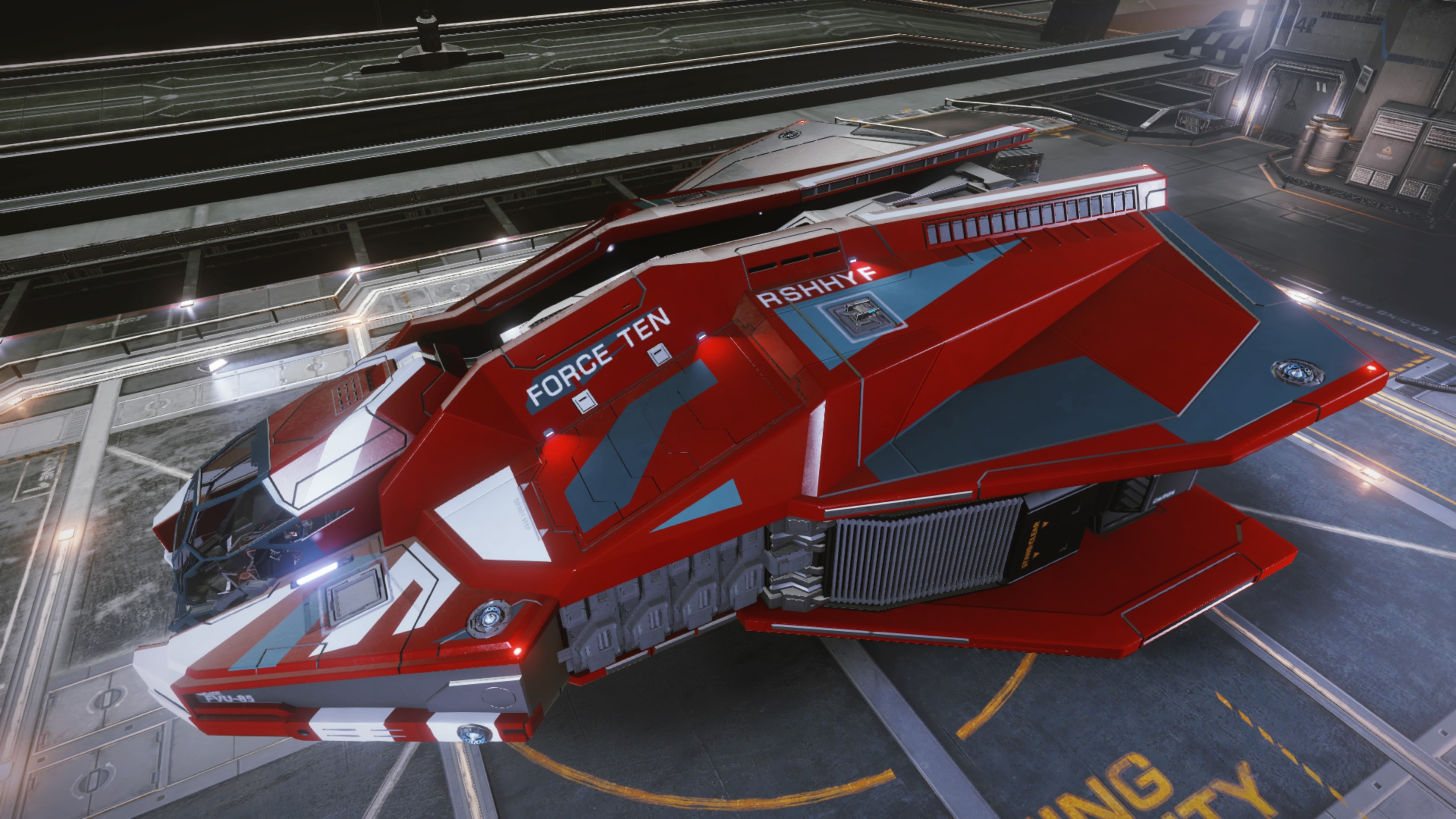 Well, if the Viper Mk IV is tough, then this ship is the toughest little ship in the entire fleet. The Force Ten manages to punch way above her weight! With two large hardpoints on a small, fast, manoeuvrable beast, I took this lady out and had more fun than I ever thought possible. It’s not as versatile as the Viper Mk IV, but she’s not really meant to be!