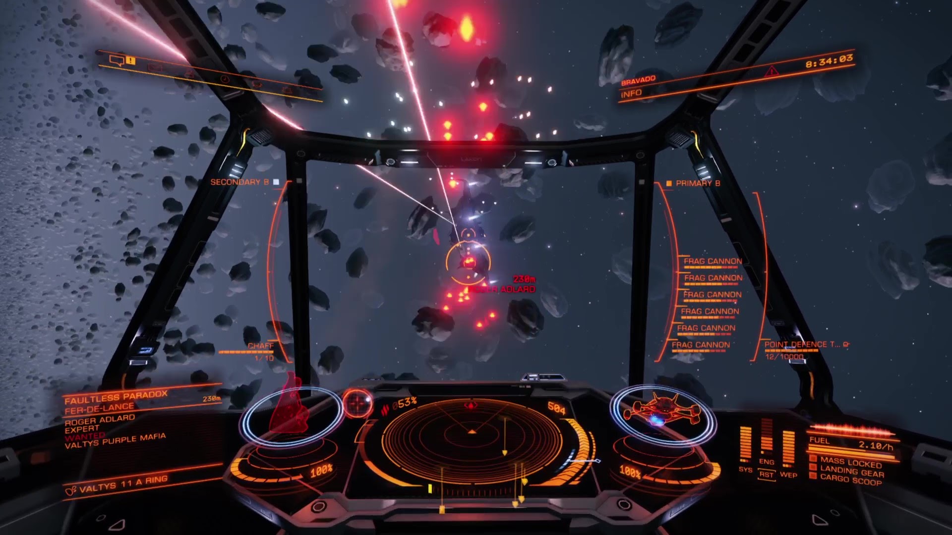 Now, I’ve said before I utterly suck at combat. The thing with frags is you have to stick close to your opponent in order to do decent damage. With my lack of piloting skill I struggled to do this but when I did land a close shot, all cannons blazing, they did an unbelievable amount of damage.