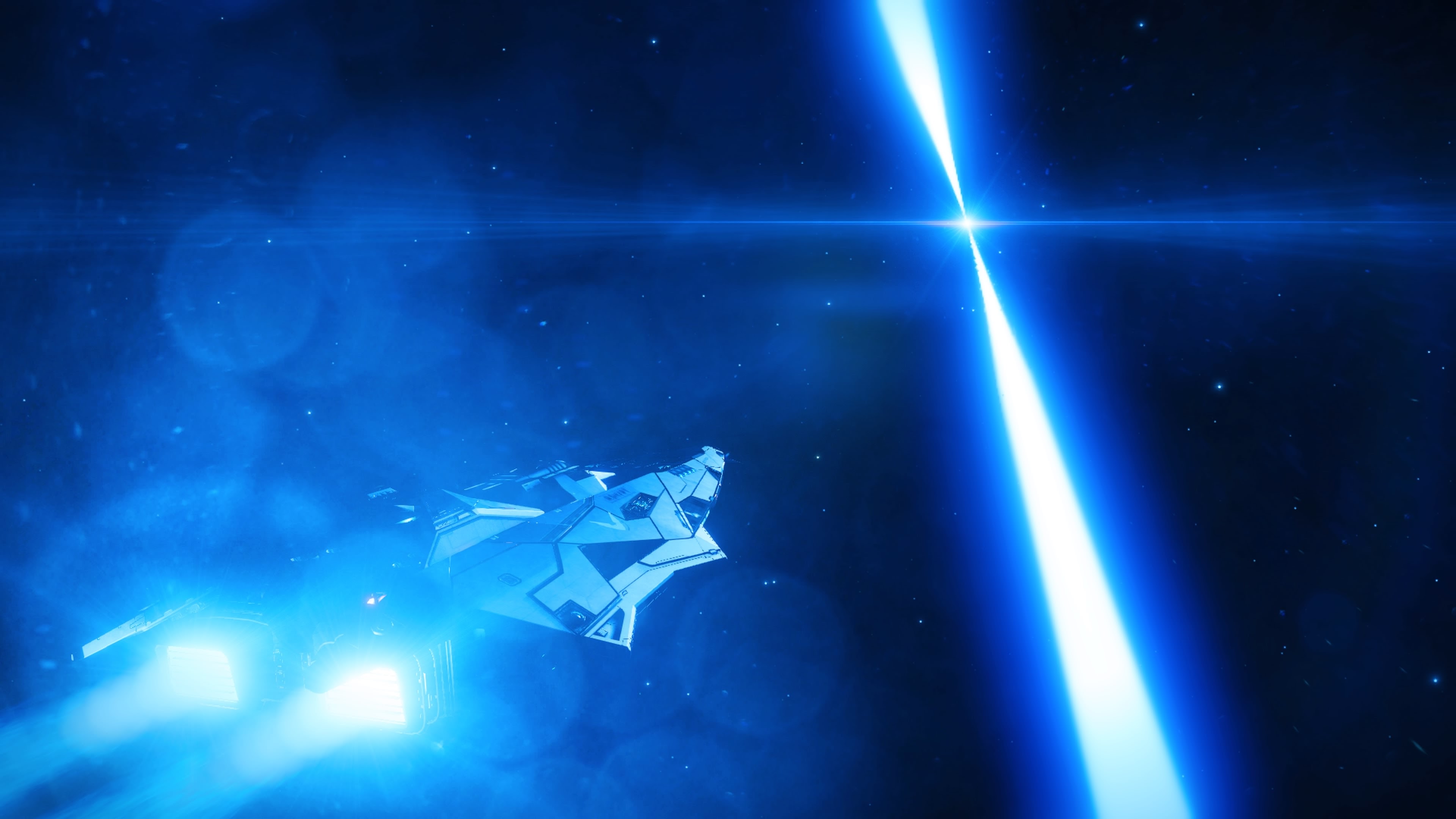 She’s pretty comprehensively engineered for deep space. A 75ly range, four bay SRV hanger, 2 bay fighter hanger, everything made as lightweight as I could, scanners, maintenance unit, repair limpets. Then I decided to take her out for a little sightseeing journey to highlight what an amazing experience can be had exploring in Elite Dangerous Horizons.